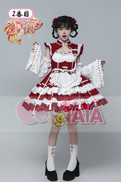 ホーム -> 主題コスプレ衣装 -> メイド・ロリータ -> チャイナ風 メイドドレス 女仆服 旗袍 ロリータ コスプレ衣装 セット 中華風ワンピースCosyaya通販 送料無料