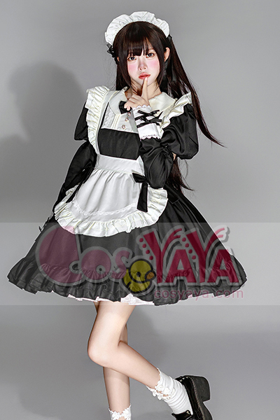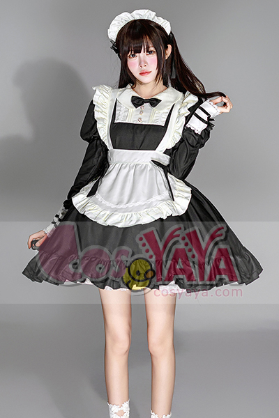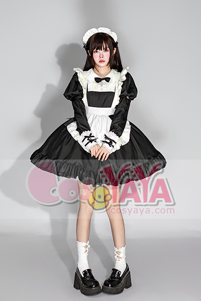 ホーム -> 主題コスプレ衣装 -> メイド・ロリータ -> 日系 メイド服 ロリータ 黒 ワンピース カフェ風 レース 女仆ドレス 可愛い コスプレ衣装Cosyaya通販 送料無料