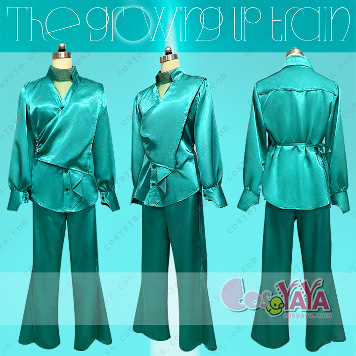 『The growing up train』衣装は、エメラルドグリーンの美しい色味と光沢感、そして計算されたシルエットが魅力の一着です。